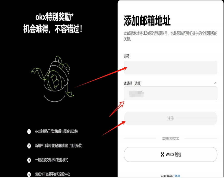 打开欧易官网(点此注册)。邀请码:2026YEAR  在开户的时候记得填写邀请码 这也就算开户完成了,可以用邮箱或者手机号注册,建议用常用邮箱,密码设置复杂点包含大小写数字符号。注册完会发验证码,填上就创建成功。别点那些假冒链接,认准官网域名避免钓鱼网站。